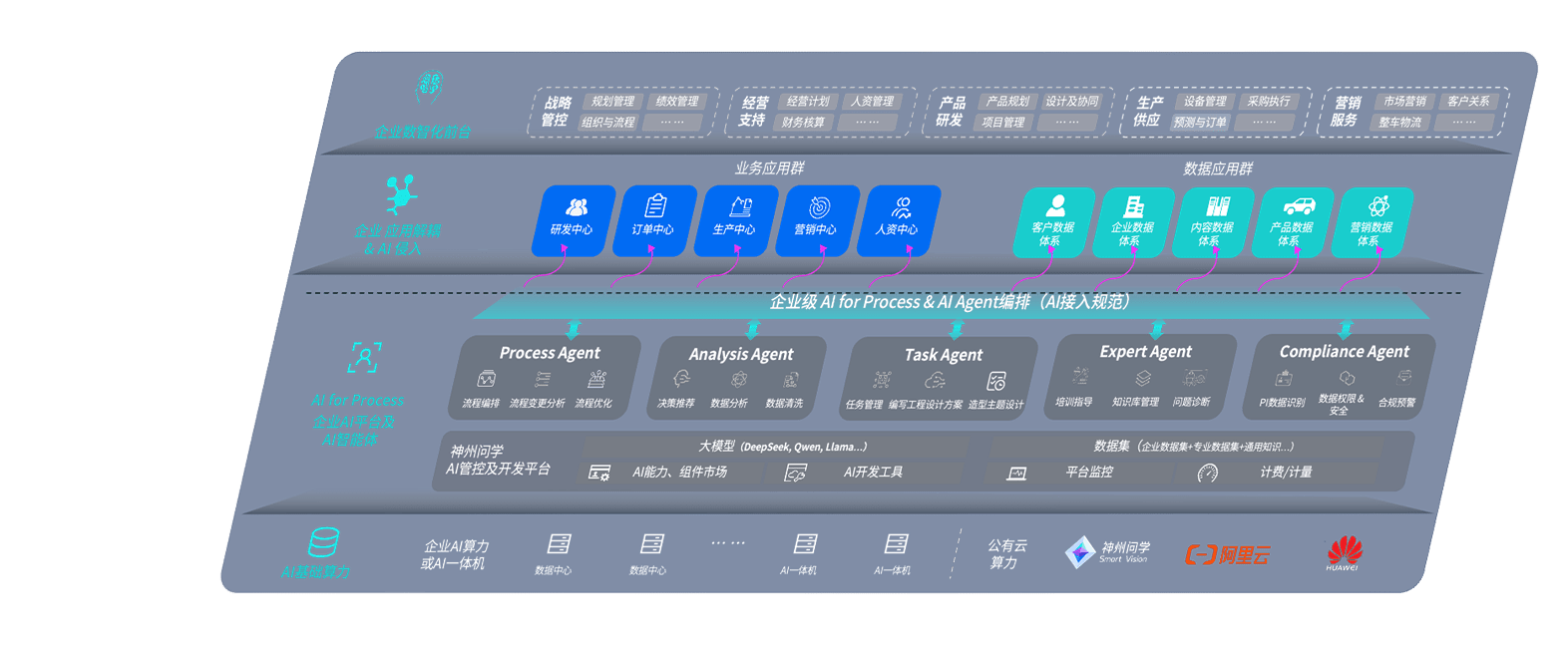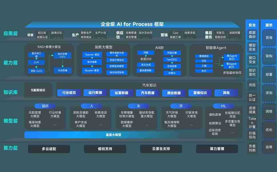 端到端的一站式AI工作空间深度融合了从企业战略规划到日常经营的全流程业务板块,,,定向解决车企内部领域多、、、部门多、、链条长、、、、场景碎片化等难题,,支持车企快速构建以AI为核心的生产力写作体系,,,实现任务执行与AI能力的无缝集成与交互